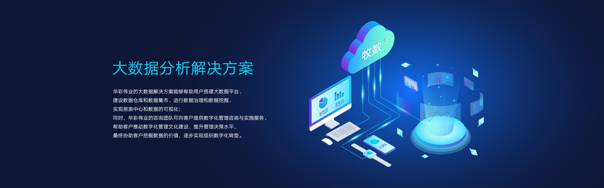 華彩偉業(yè)專(zhuān)注于大數(shù)據(jù)相關(guān)技術(shù)的具體應(yīng)用,尤其是數(shù)據(jù)驅(qū)動(dòng)管理方面的應(yīng)用與分析技術(shù)應(yīng)用。華彩偉業(yè)的大數(shù)據(jù)解決方案能夠幫助用戶(hù)搭建大數(shù)據(jù)平臺(tái)、建設(shè)數(shù)據(jù)倉(cāng)庫(kù)和數(shù)據(jù)集市、進(jìn)行數(shù)據(jù)治理和數(shù)據(jù)挖掘、實(shí)現(xiàn)報(bào)表中心和數(shù)據(jù)的可視化;同時(shí),華彩偉業(yè)的咨詢(xún)團(tuán)隊(duì)可向客戶(hù)提供數(shù)字化管理咨詢(xún)與實(shí)施服務(wù)、幫助客戶(hù)推動(dòng)數(shù)字化管理文化建設(shè)、提升管理決策水平,最終協(xié)助客戶(hù)挖掘數(shù)據(jù)的價(jià)值,逐步實(shí)現(xiàn)組織數(shù)字化轉(zhuǎn)型。大數(shù)據(jù)分析已廣泛應(yīng)用于各個(gè)領(lǐng)域,無(wú)論是國(guó)家政府部門(mén)、企事業(yè)單位,大數(shù)據(jù)分析都是進(jìn)行決策和制作決定的重要環(huán)節(jié)。